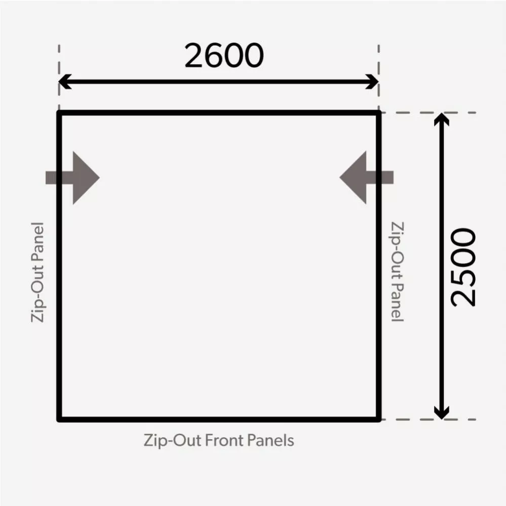 Mit einer Vorzeltgrösse von 260 x 250 cm hat es genügend Platz um mit Freunden oder Familien einen schönen Campingurlaub zu verbringen. Die grosszügige Raumhöhe trägt zu einem einzigartigem Raumgefühl bei. Das Zeltdach des Dometic Rally Air Pro 260 besteht zusätzlich aus dem Dual-Pitch-Roof System. Das bedeutet, dass Wind und Regenwasser noch besser abfliessen, um so Wassersäcke oder ein Durchhängen des Daches zu vermeiden.