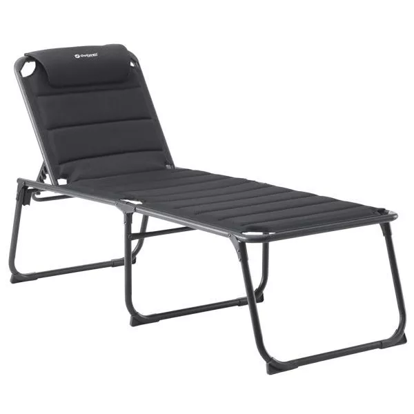 Die Liege Outwell Samoa besitzt eine schnell trocknende Polsterung sowie ein Textiline-Netzmaterial in einem ansprechenden Schwarzton. Die Dreibeinliege ist unter dem Bezug mit einem wasserabweisenden Material versehen, damit sich die Schaumstoffpolster nicht mit Wasser vollsaugen können, falls die Liege einmal im Regen vergessen werden sollte. Die KopfstĂŒtze lĂ€sst sich einstellen und abnehmen.