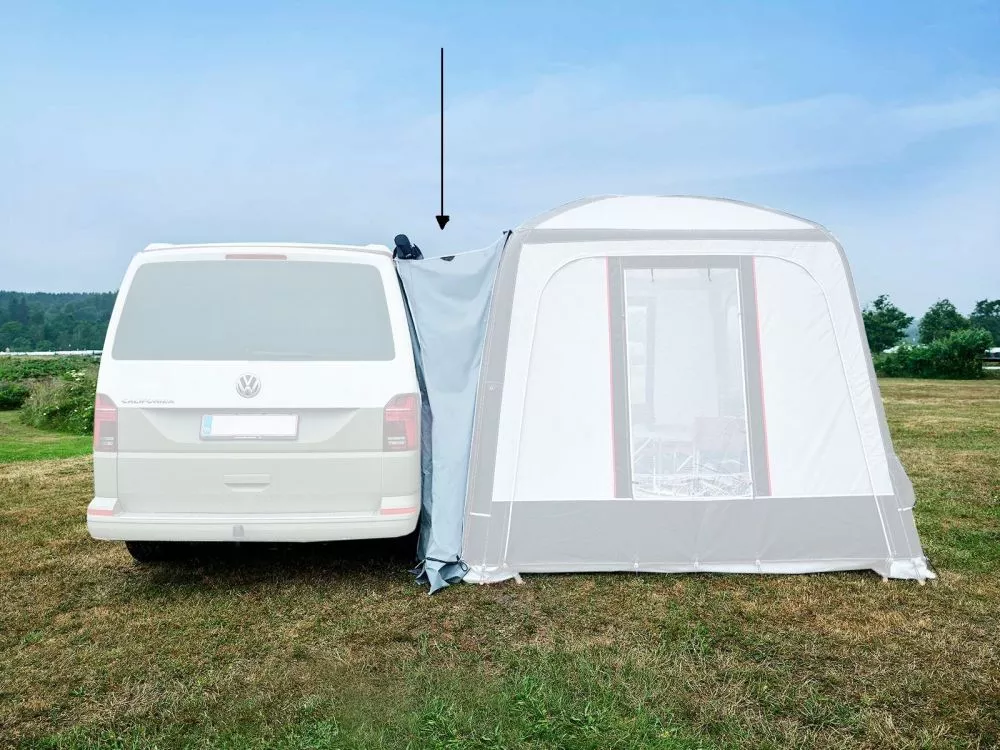 Die Isabella Schleusen sind passend für das freistehende Bus- und Kastenwagenvorzelt Isabella Air X-Tension. Du kannst aus 3 verschiedenen Modellen wählen, je nachdem, welches Fahrzeugmodell zu besitzt. Der Tunnel wird einfach am vorhandenen Keder befestigt und per Reissverschuss mit dem Isabella Luftvorzelt verbunden. Die Anschlussschleuse ist so konstruiert, dass sich die Schiebetür an deinem Campingbus komplett aufschieben lässt.