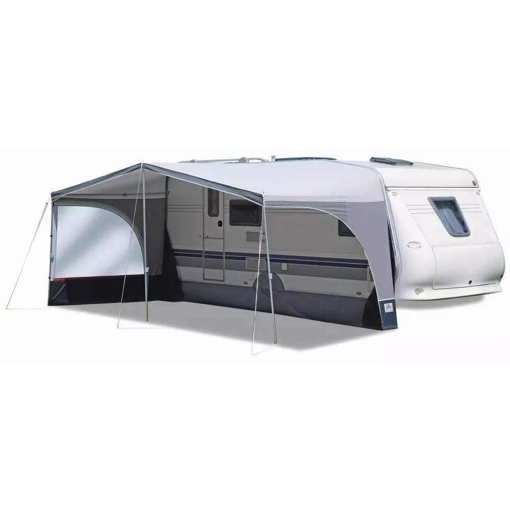 Das Wohnwagen-Sonnendach brand Sunny SD ist ein komfortables, ca. 235 cm tiefes QualitĂ€ts-Sonnendach, das inklusive SeitenwĂ€nden geliefert wird. Diese Seitenwandelelemente sind durch ReissverschlĂŒsse einfach zu entnehmen. Das Sunny SD ĂŒberzeugt durch einen einfachen Aufbau des VorzeltgerĂŒsts mit drei Standbeinen und drei Dachstangen. Das leichte AluminiumgestĂ€nge wird besonders von Reisecampern geschĂ€tzt. Das spezielle Sonnendach-Gewebe garantiert ein minimales Gewicht.